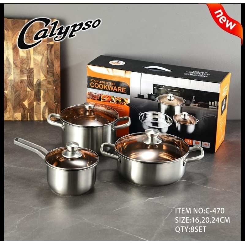 TERLARIS CALYPSO C-470 Panci set Multi Fungsi 3pcs Stainless Steel Tutup Kaca Gagang Stainless Steel