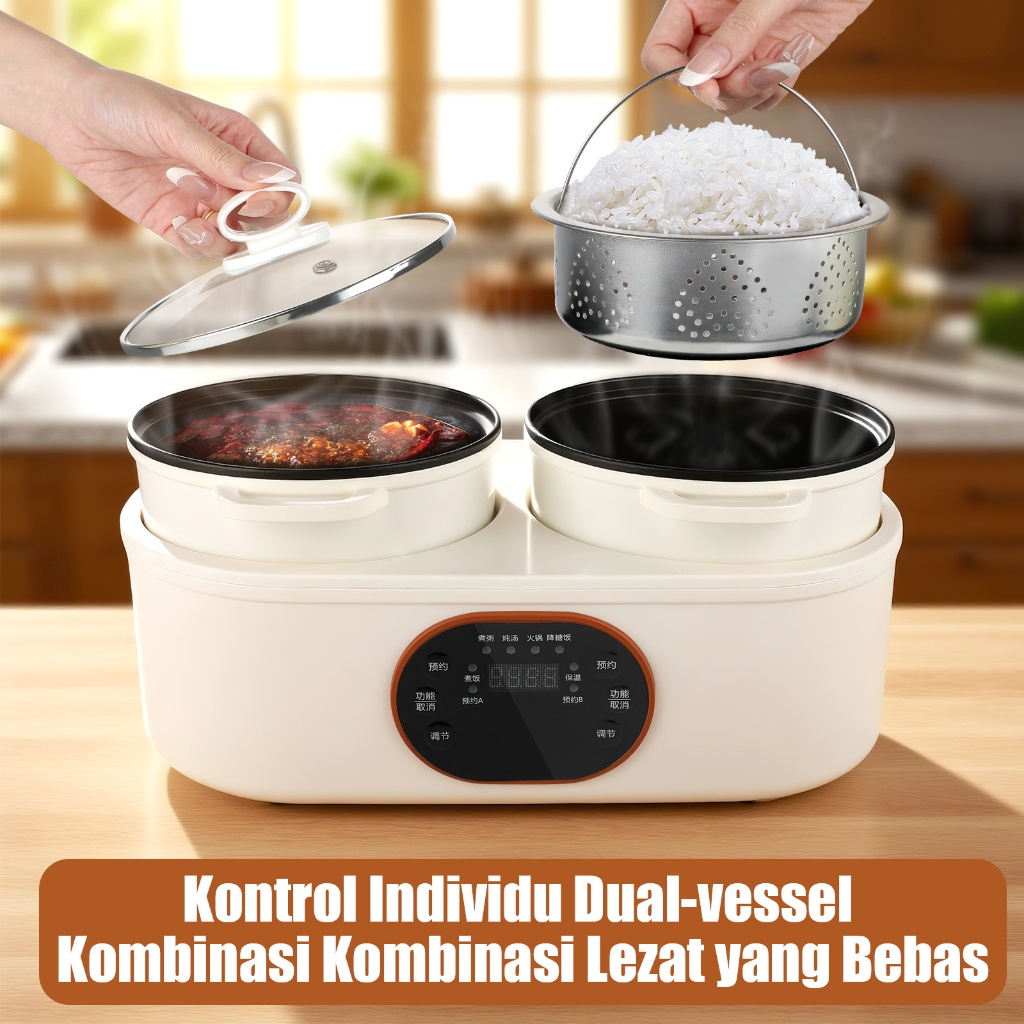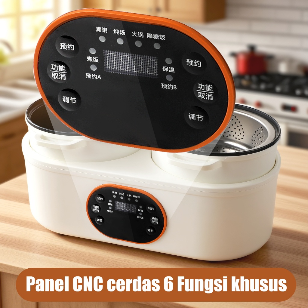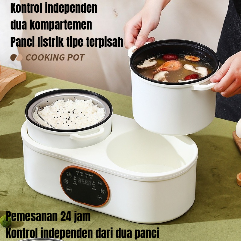 TERLARIS Panci Listrik Double Pot Serbaguna 4L , 6IN1/ Panci Rice Cooker Low Carbo / Panci Elektrik Multifungsi Ganda C