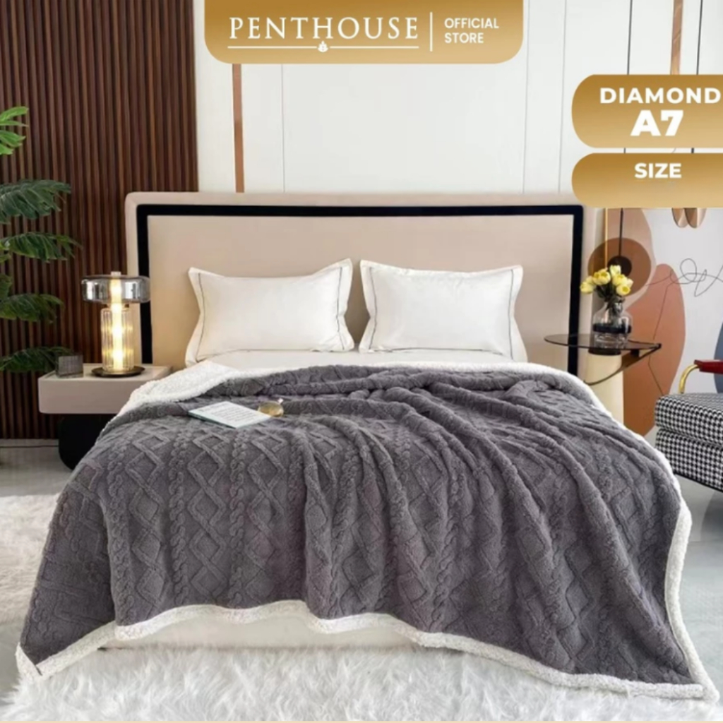 TERLARIS Selimut Bulu Domba 2 Sisi Tebal Super Soft PENTHOUSE 180 x 200 | Selimut A7 Super Lembut