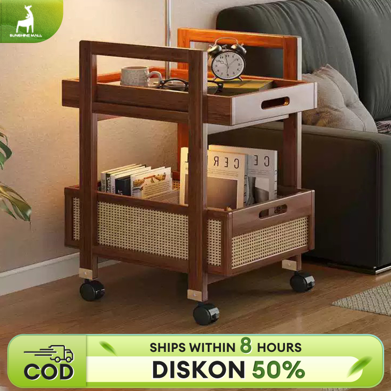 TERLARIS Rak Penyimpanan 2/3 Lapis Rak Buku Beroda Rak Dapur Bambu Troli Rak Bergerak