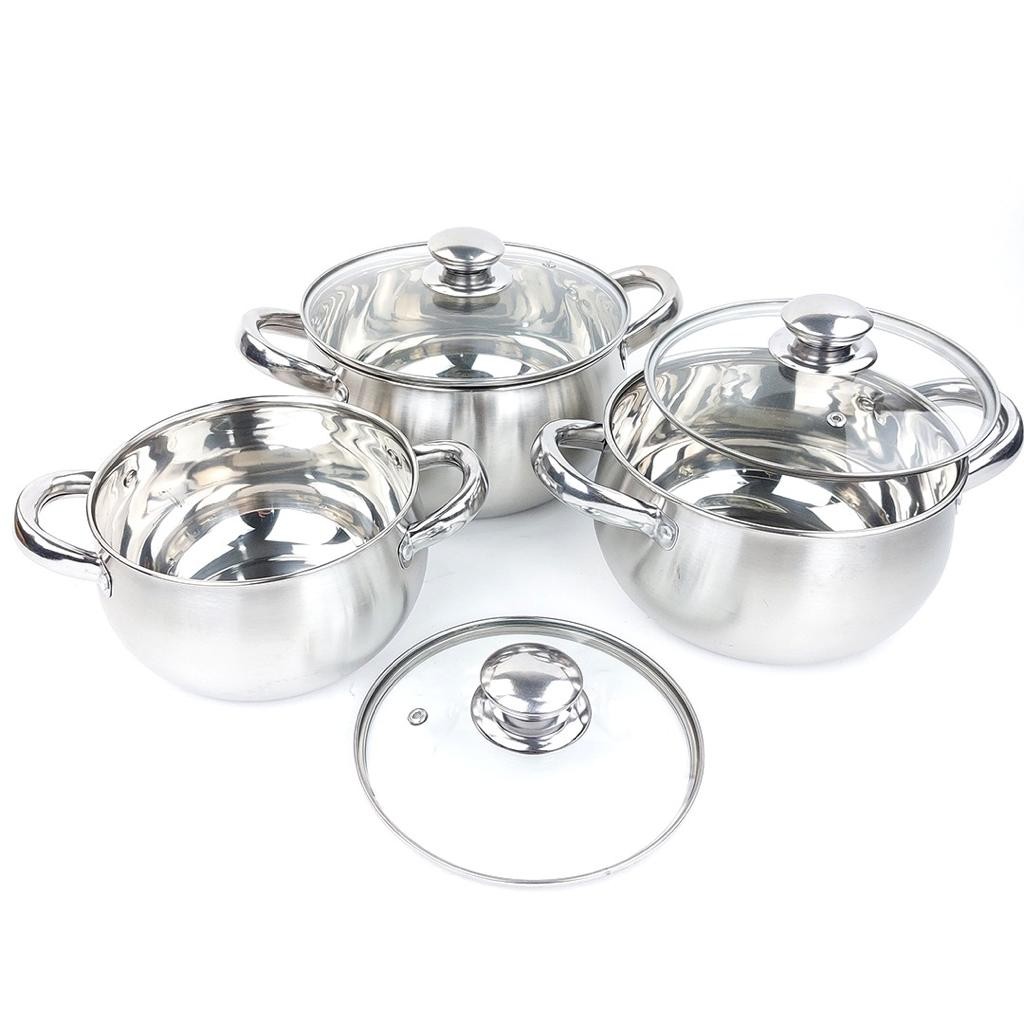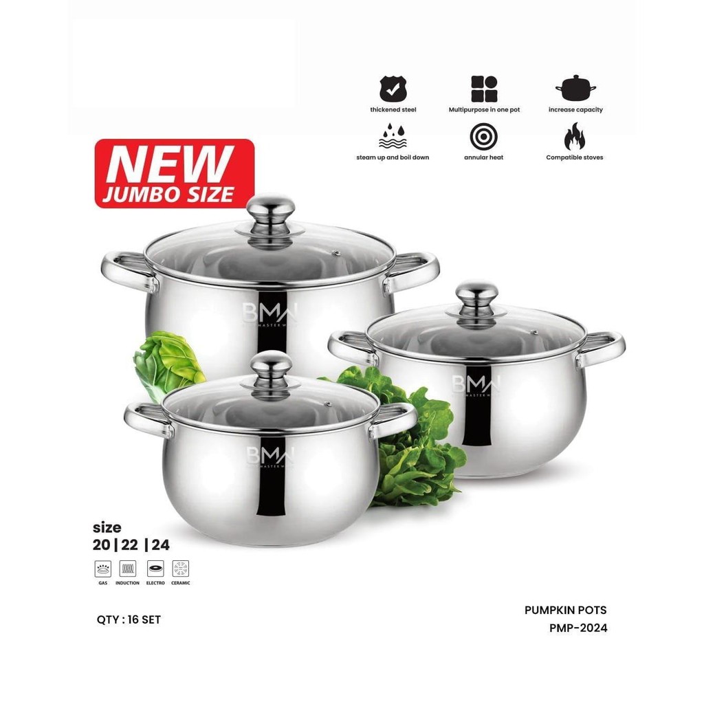TERLARIS Panci Labu Jumbo Tutup Kaca Isi 3 Pcs Soup Set Stainless Steel Panci Pumpkin Pots