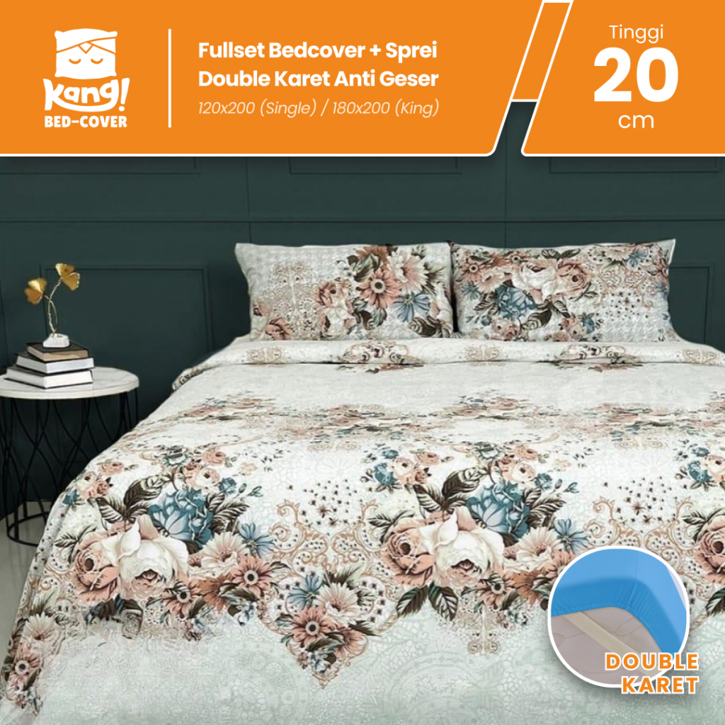 TERLARIS Kangbc - Bedcover 1 Set Sprei 180 x 200 Microtex Motif Bunga Amora - Bed Cover Set Sprei Sarung Bantal Guling U