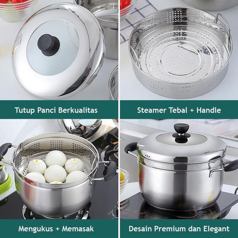 TERLARIS Qiek Panci Kukusan Kecil Panci Tutup Kaca Panci Kukus Stainless Steel Panci Kukus Serbaguna Panci Kukus
