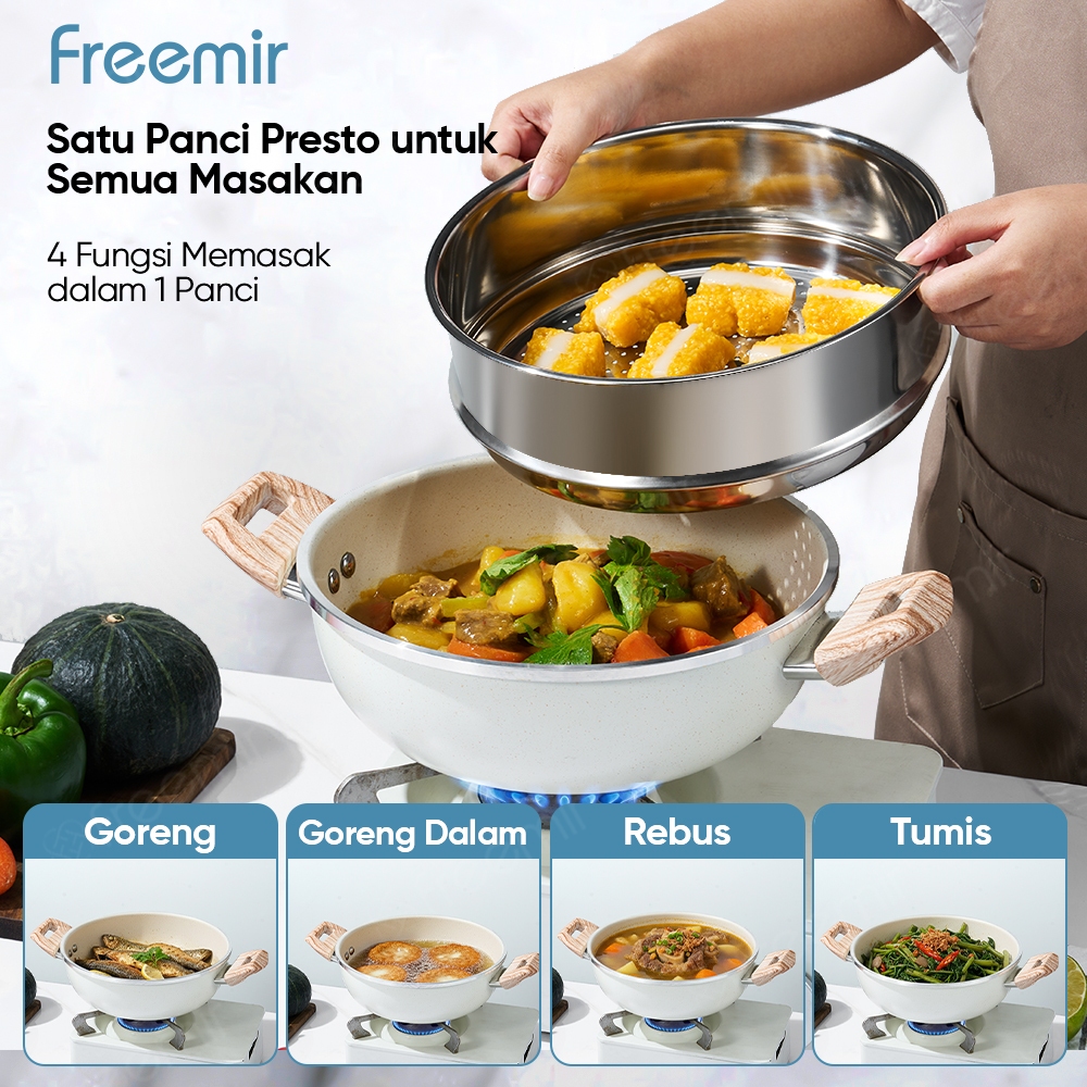TERLARIS Special freemir Wajan Kuping Granite 24cm Micro-Pressure Panci Anti Lengket Serbaguna Untuk Pasangan & Keluarga