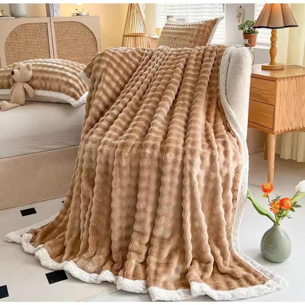 TERLARIS Selimut Bulu flanel gelombang tekstur lembut halus seperti bulu kelinci 180*200cm with list