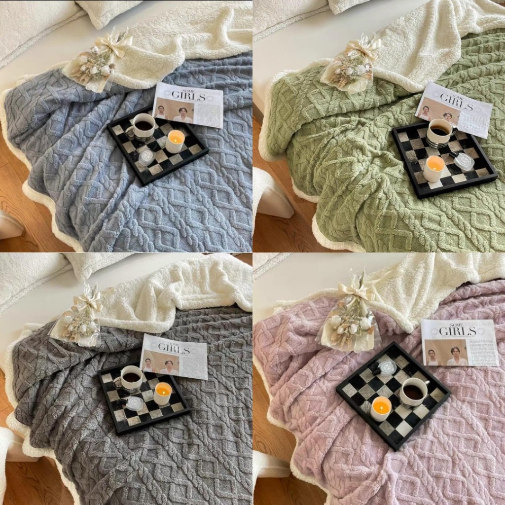 TERLARIS Selimut Bulu Domba 2 Sisi / Selimut Waffle / Selimut Domba Ukuran 180x200 Tebal Emboss Anti Alergi New Arrival