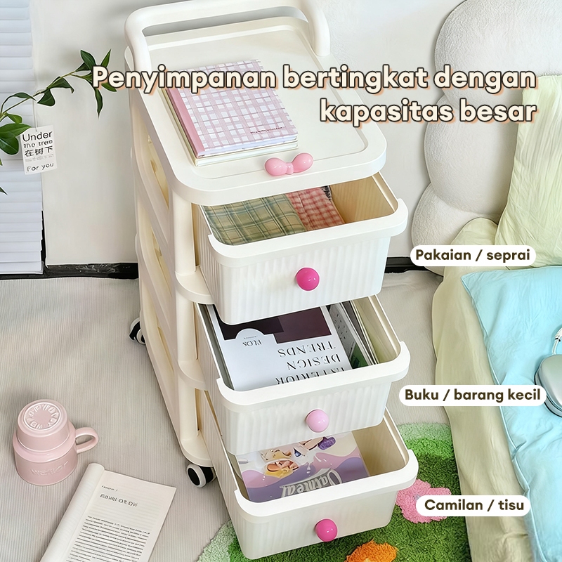 TERLARIS Rak Troli Susun Serbaguna Plastik Rak Trolley dorong Laci Rak Anak Aesthetic Penyimpanan Laci penyimpanan Rak L