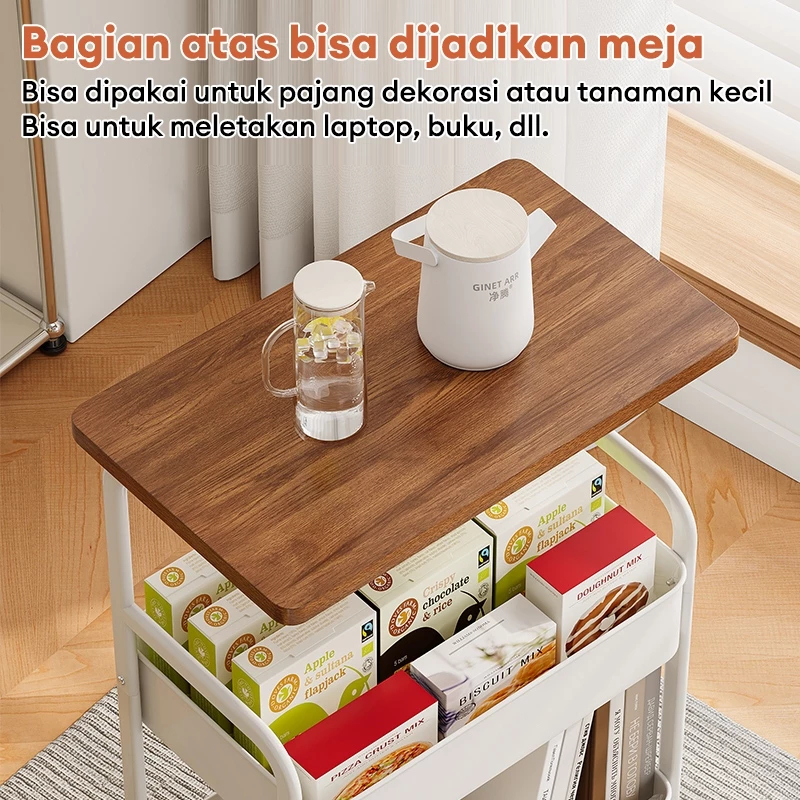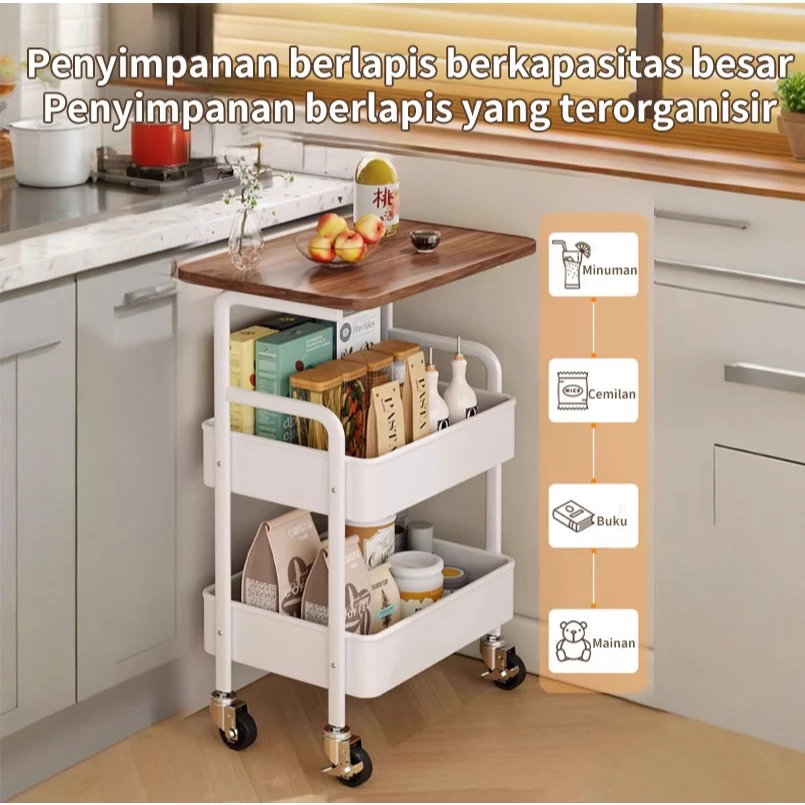 TERLARIS Rak Troli Susun Besi Rak Penyimpanan Dapur Stainless Dengan Roda Rak Dorong Rak Kamar Mandi Rak Snack Meja Sud