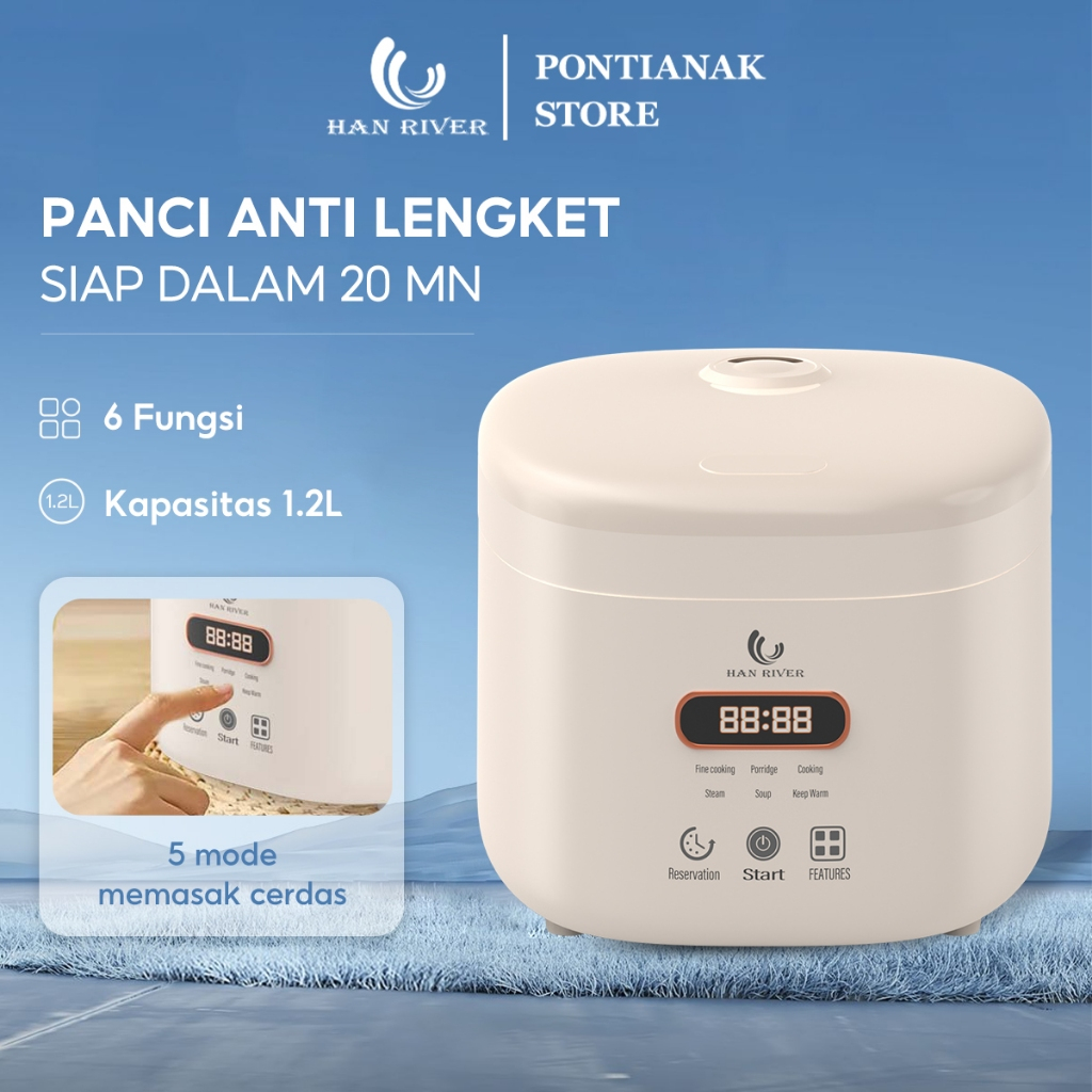 TERLARIS [Pengiriman dari Pontianak]HAN RIVER Rice Cooker 1.2L Magic Com Smart cooker Penanak nasi 400 Watt