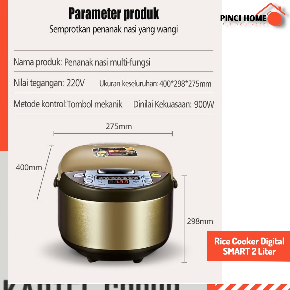 TERLARIS Rice Cooker SMART Digital 2 Liter Stainless Steel Motif