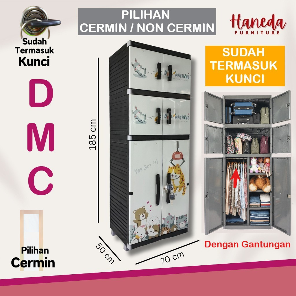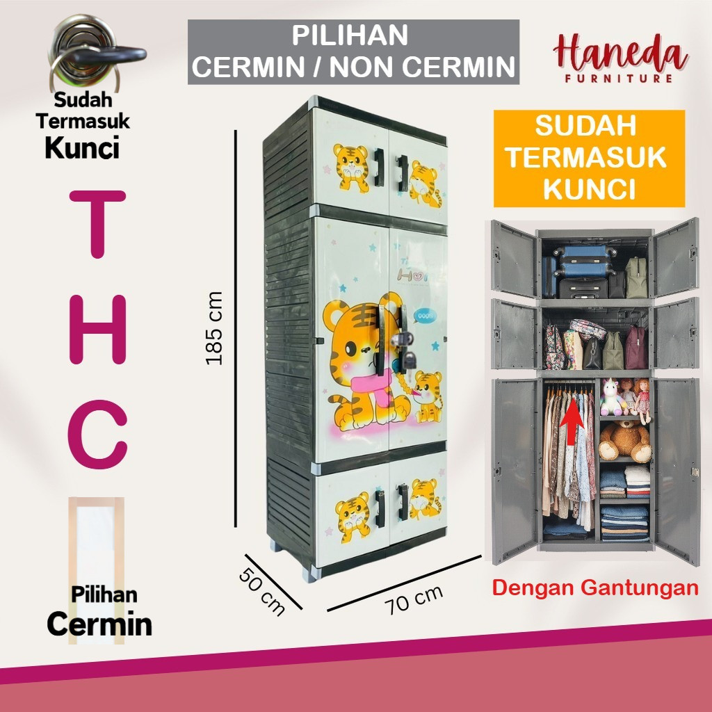 TERLARIS HANEDA Lemari Pakaian Plastik MR PLAS GANTUNGAN STICKER JUMBO Lemari Susun Karakter Cermin Kunci