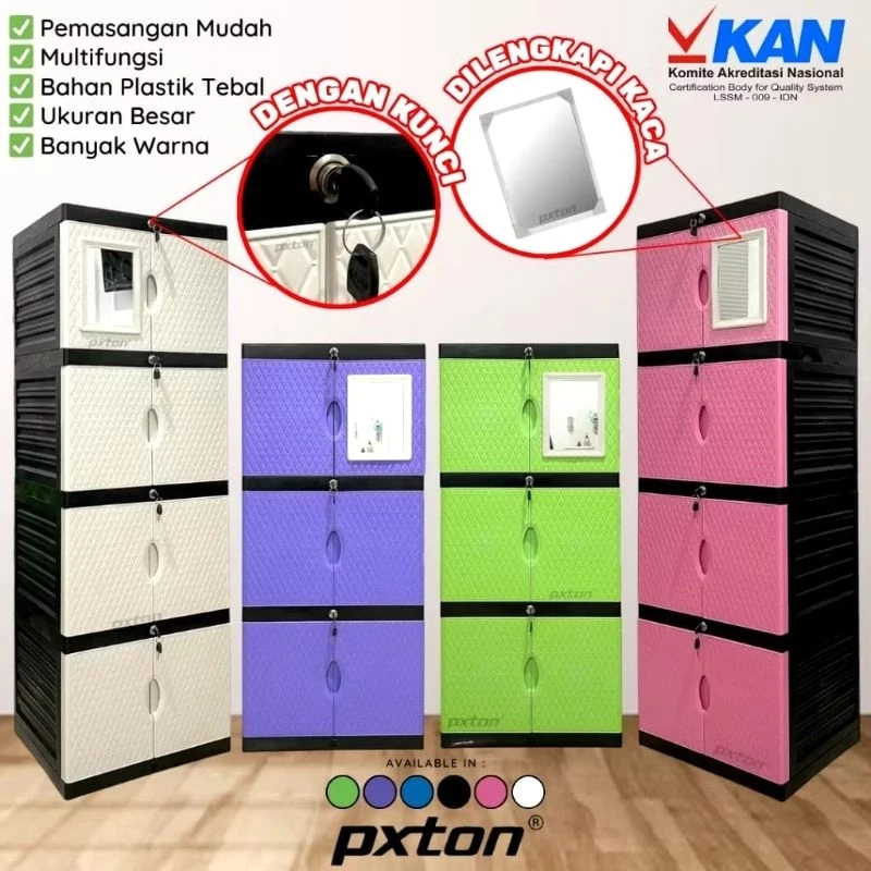 TERLARIS Lemari Plastik Pakaian Pxton Diamond 4 susun full kunci + 2kaca