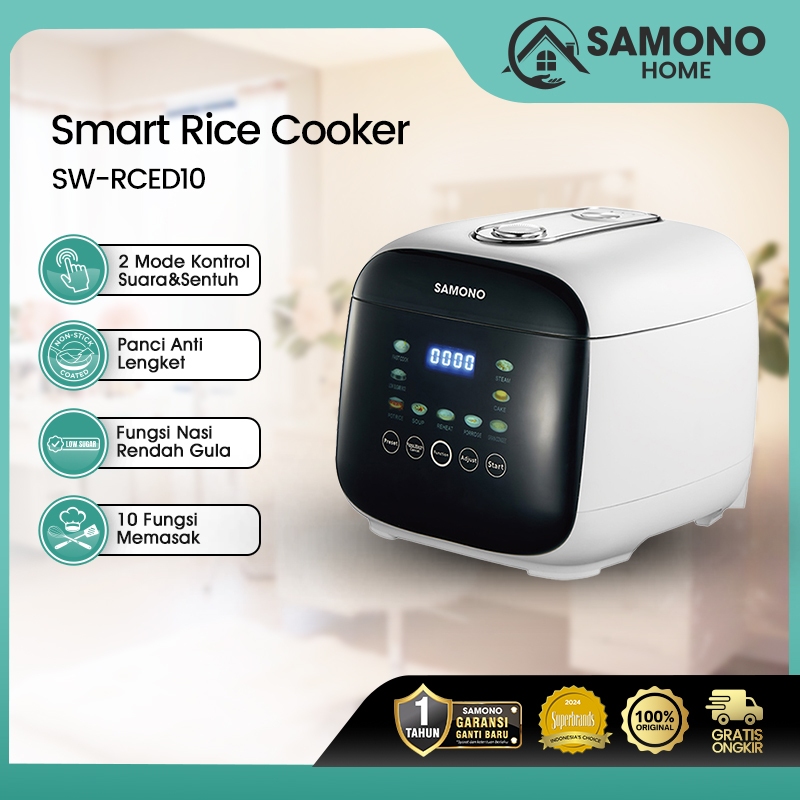 TERLARIS SAMONO Smart Rice Cooker 1Liter 500 Watt Touch Screen SW-RCED10 Garansi 1 Tahun