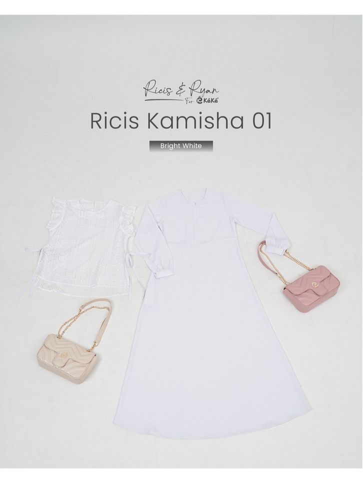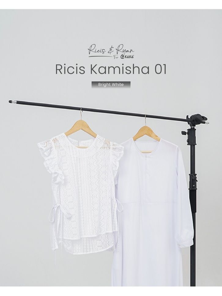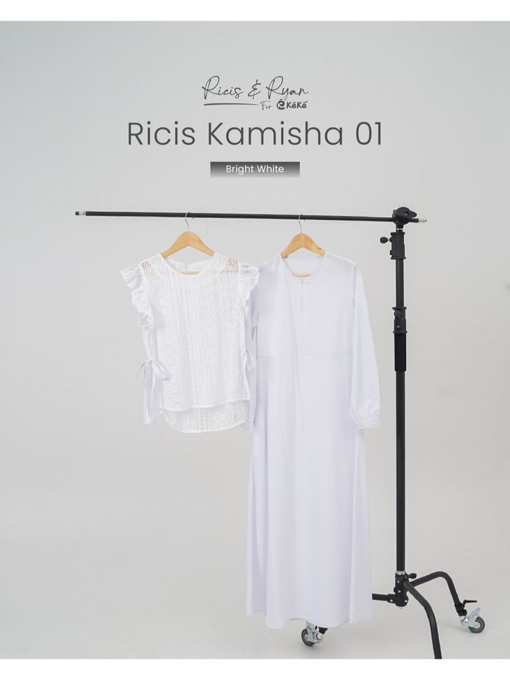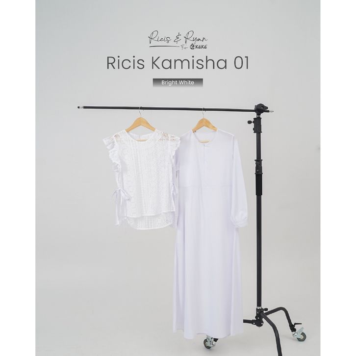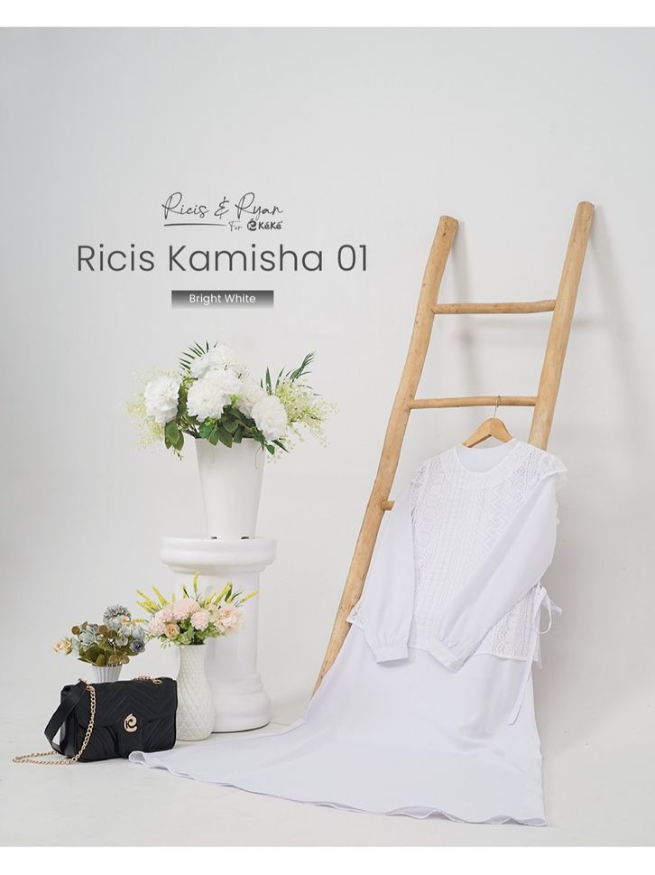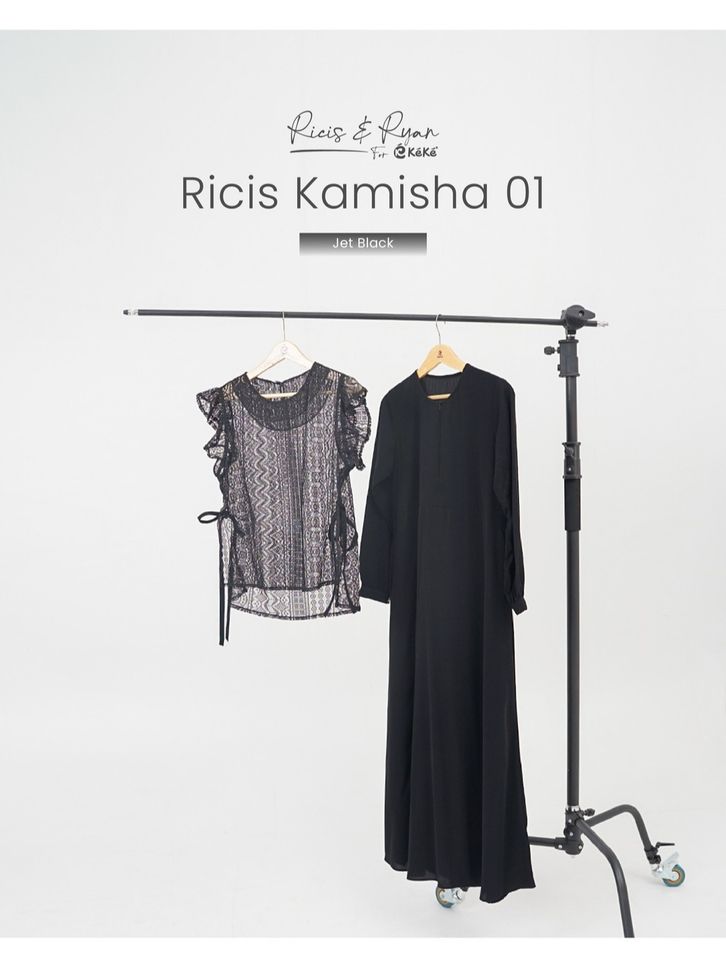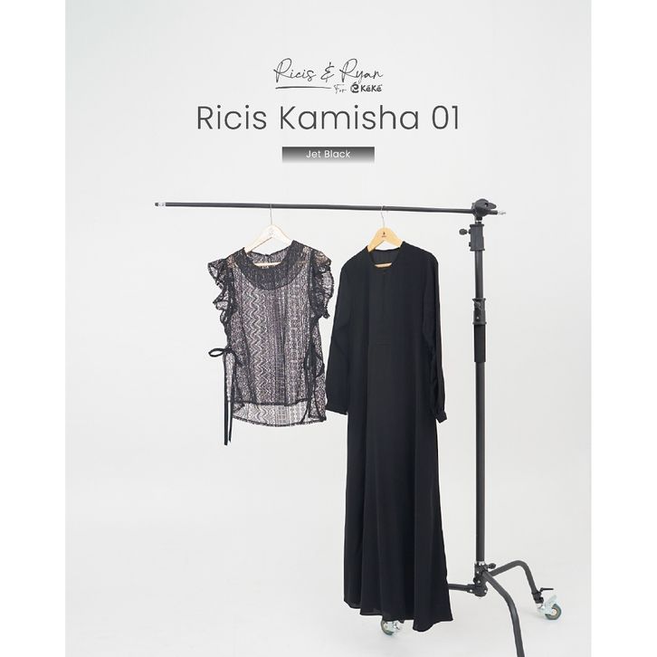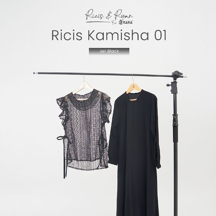 Ricis Kamisha 01 Gamis Brukat Hitam Putih Feminin Elegan dengan Vest Lace & Fitur Busui Friendly