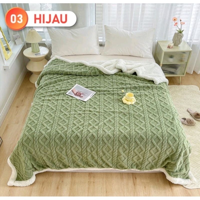 TERLARIS Selimut Bulu Domba 180 x200 Dua Sisi Tebal Super Soft Penthouse Selimut Lembut Dan Halus