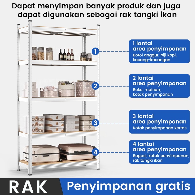 TERLARIS ra Rak serbaguna Rak besi Rak besi susun Rak penyimpanan Rak besi siku Rak adjustable