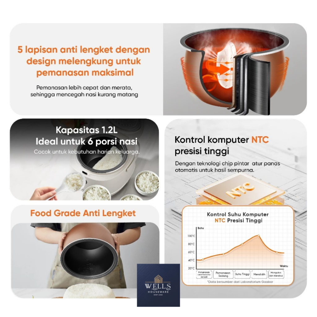 TERLARIS Wells Houseware - Gaabor Smart Rice Cooker RC-30T01A Magic Com 500W 1.2L Touch Screen