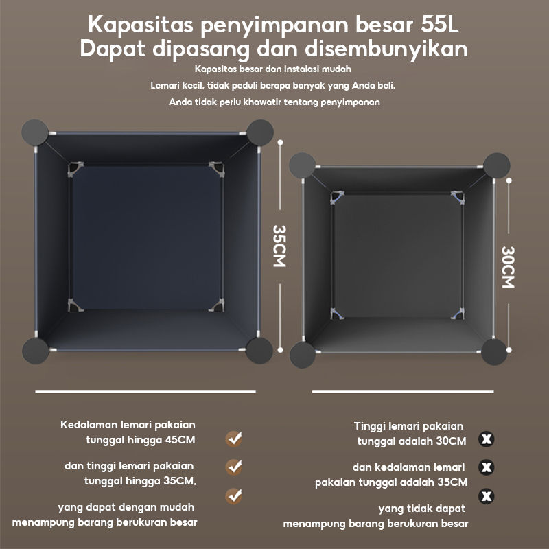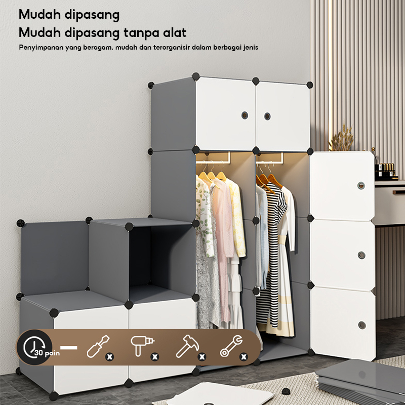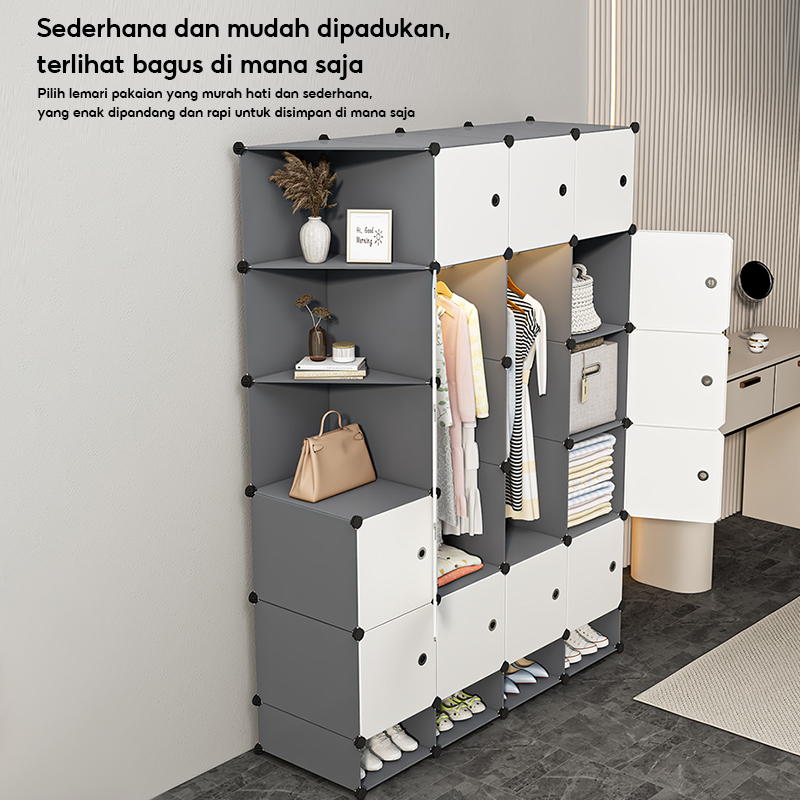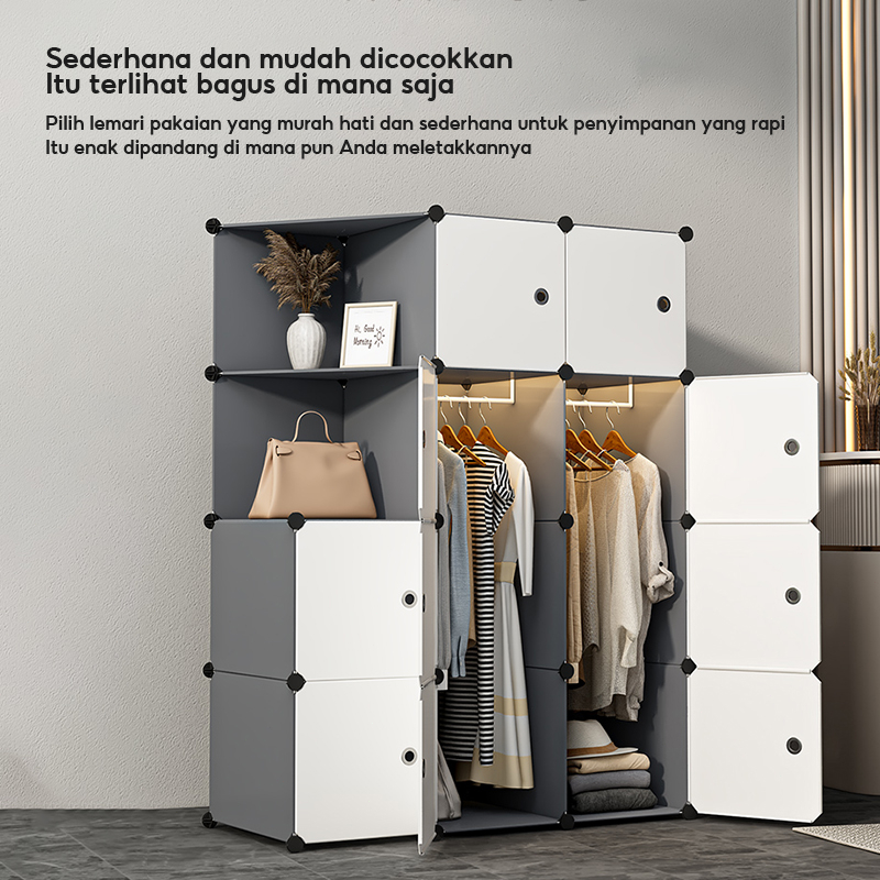 TERLARIS Lemari Pakaian Plastik Portable Lemari Baju Plastik Lemari Susun Anti Debu Lemari Penyimpanan Serbaguna