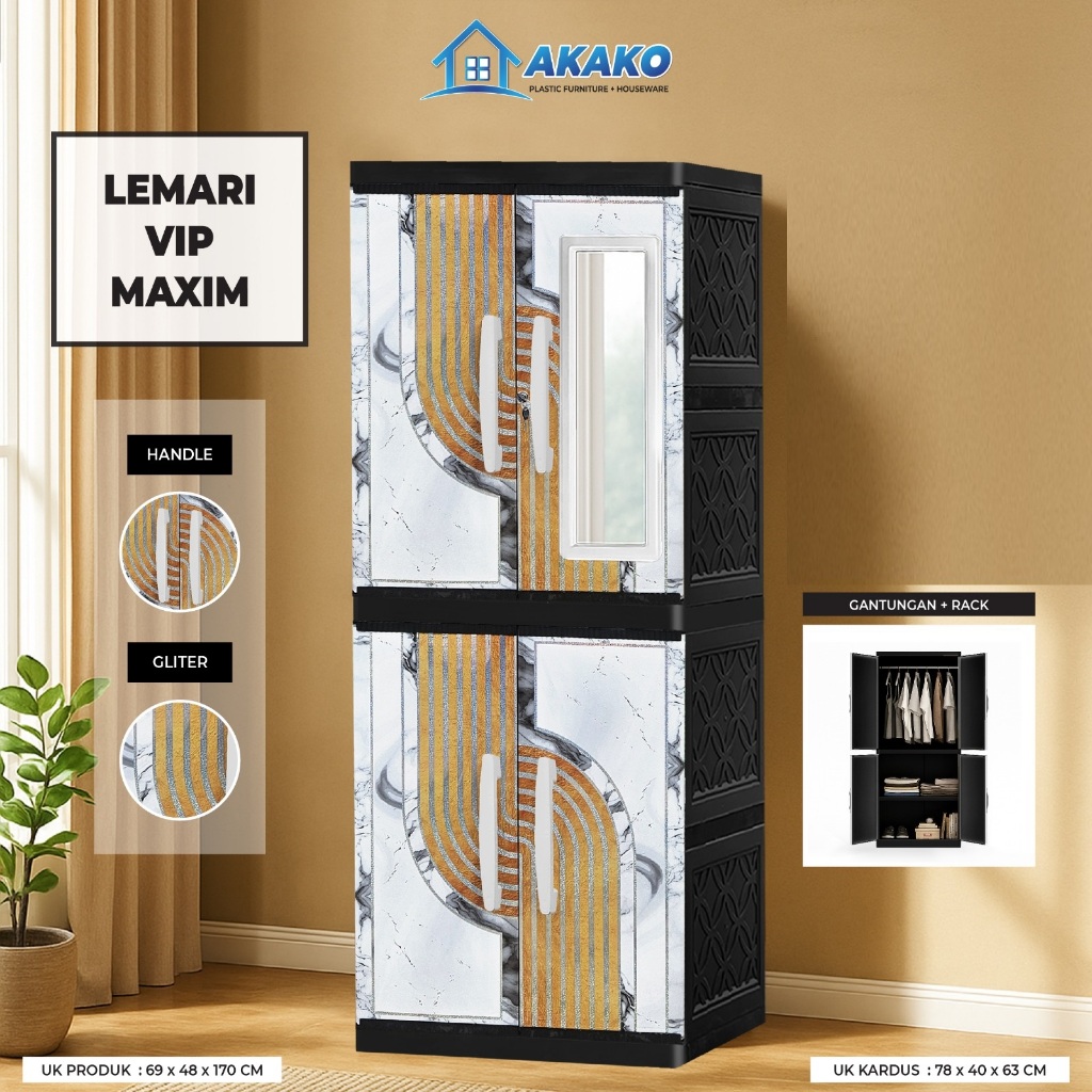 TERLARIS AKAKO Lemari Pakaian Plastik Baju JUMBO BESAR Mirip NAIBA MURAH LP2P VIP KACA CERMIN FULL KUNCI