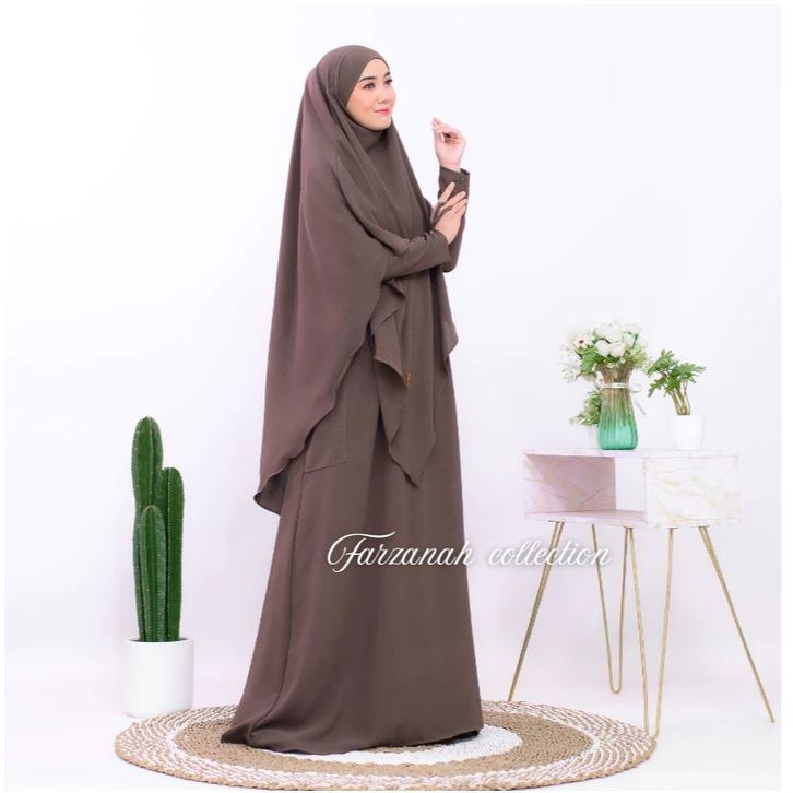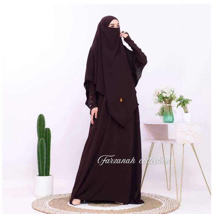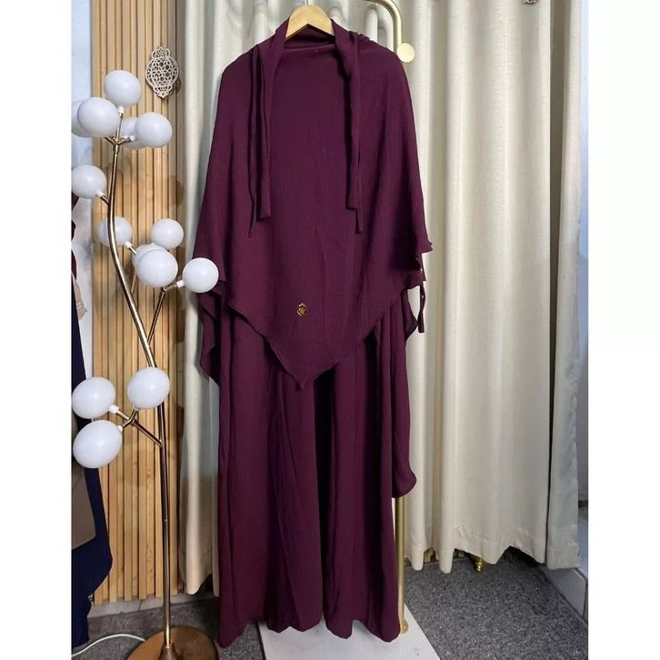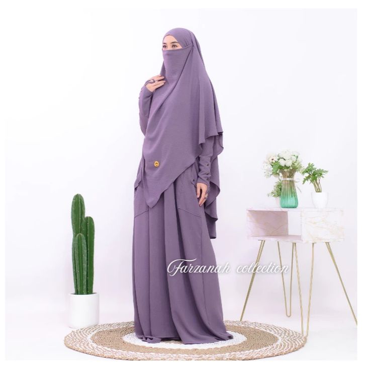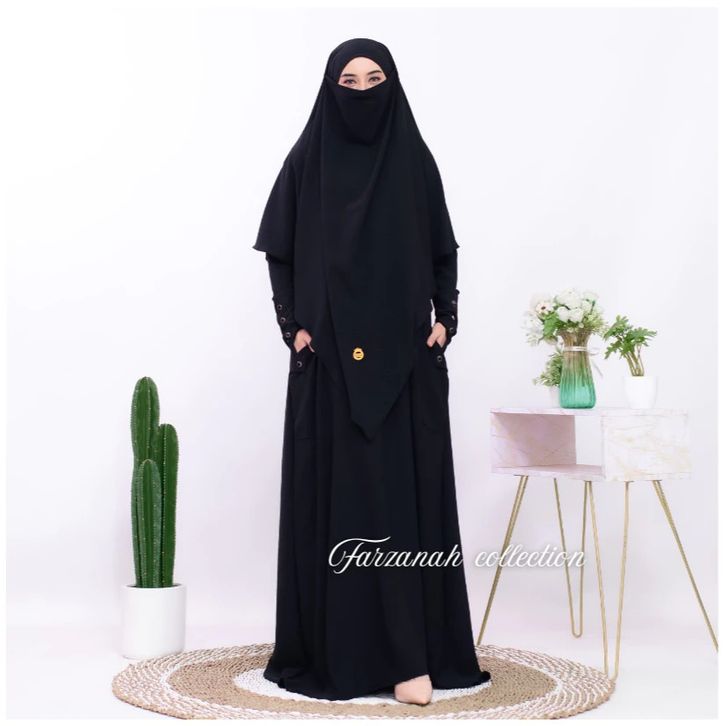 Abaya Haviza Set French Khimar Abaya Muslimah Umroh Haji Terbaru Crinkle Variasi Kancing Abaya Wanita Kekinian