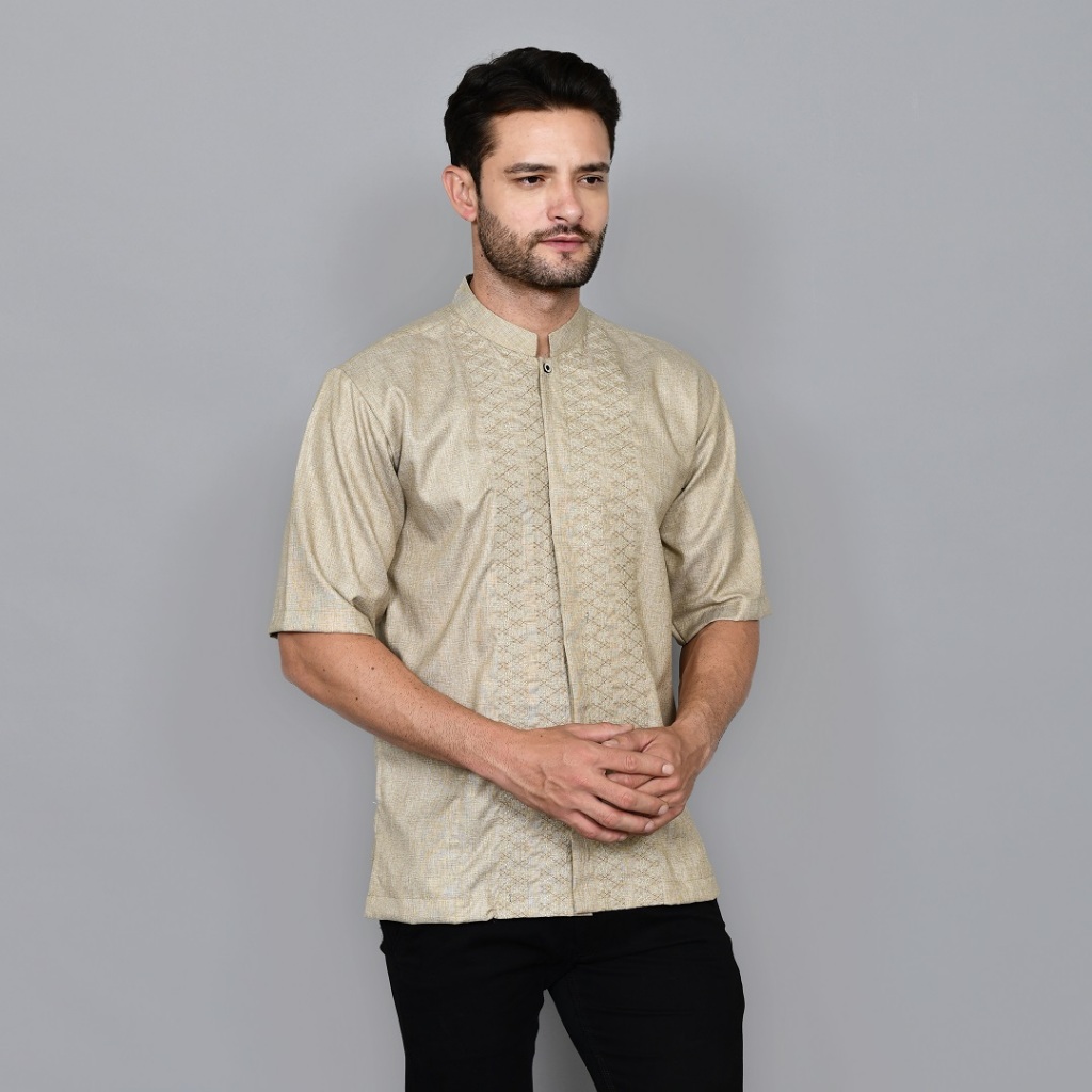 baju kemeja koko bordir pria dewasa lengan pendek alkinan ak043 katun madina premium warna
