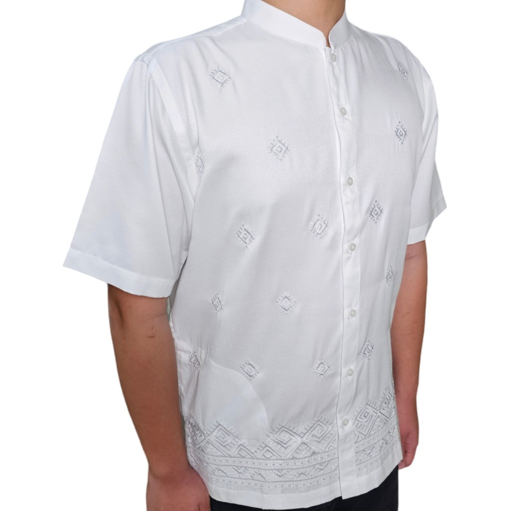 MaxMarine Baju Koko Lengan Pendek Pria Bordir Putih 30351