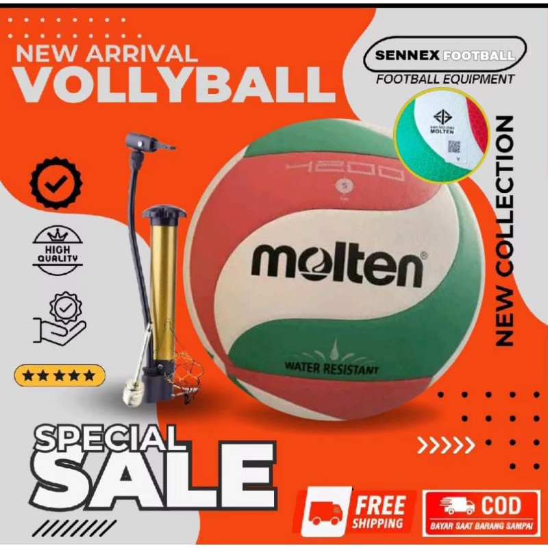 BOLA VOLLY VOLY VOLLEY VOLI ORIGINAL MOLTEN4200V5M 5000 V5M 5000 BINTIK FREE POMPA JARING