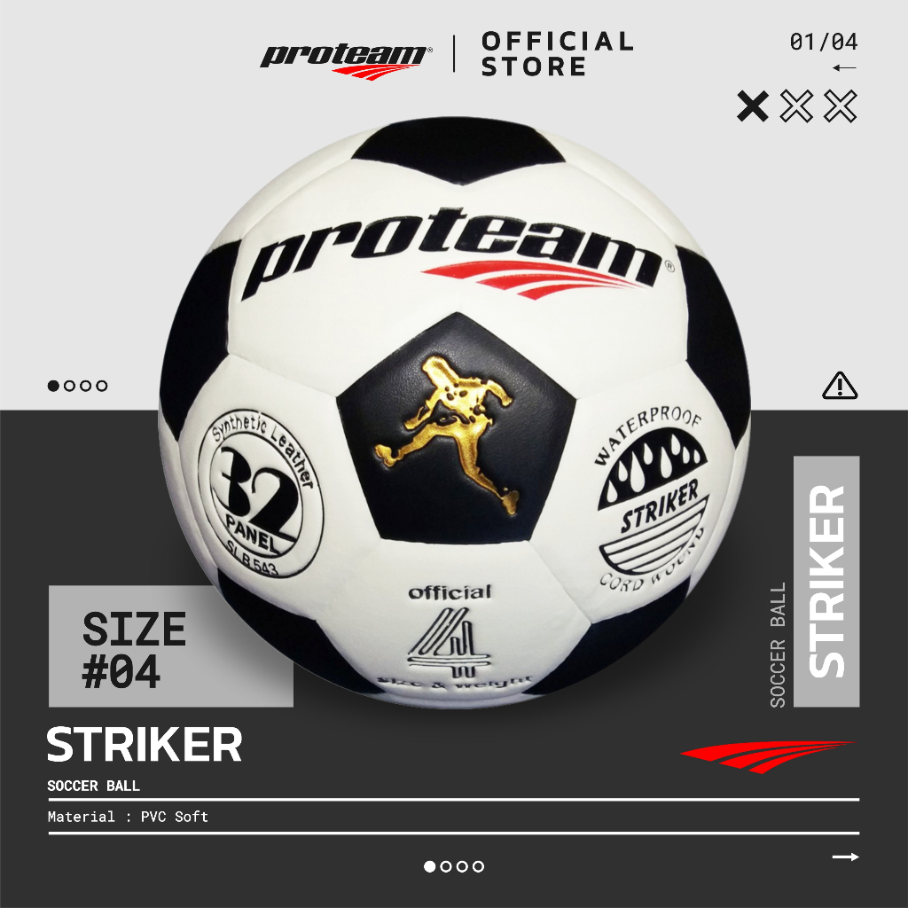 Bola Sepak Proteam Original Soccer Ball Classic Hitam Putih Striker Size 4