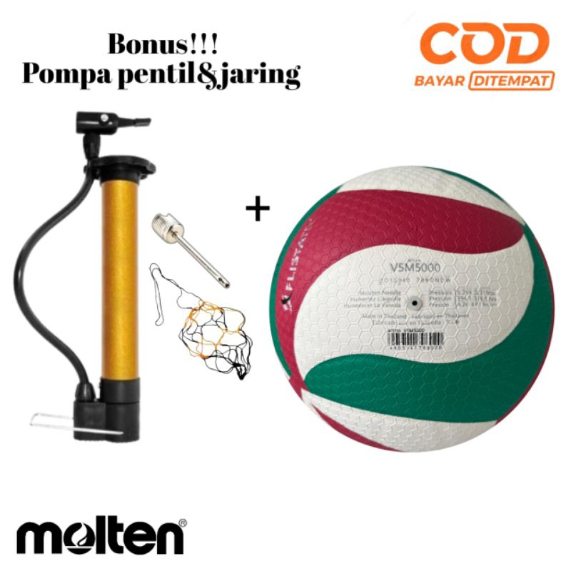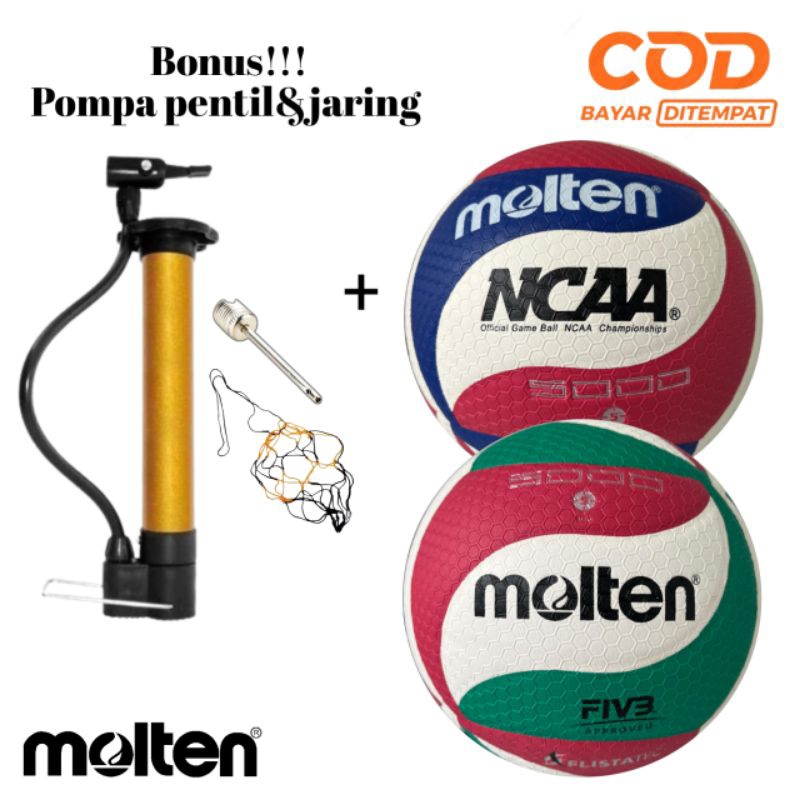 BOLA VOLLY MOLTEN NCAA 5000 WATER RESISTANT PRESS ORIGINAL GRATIS POMPA JARING