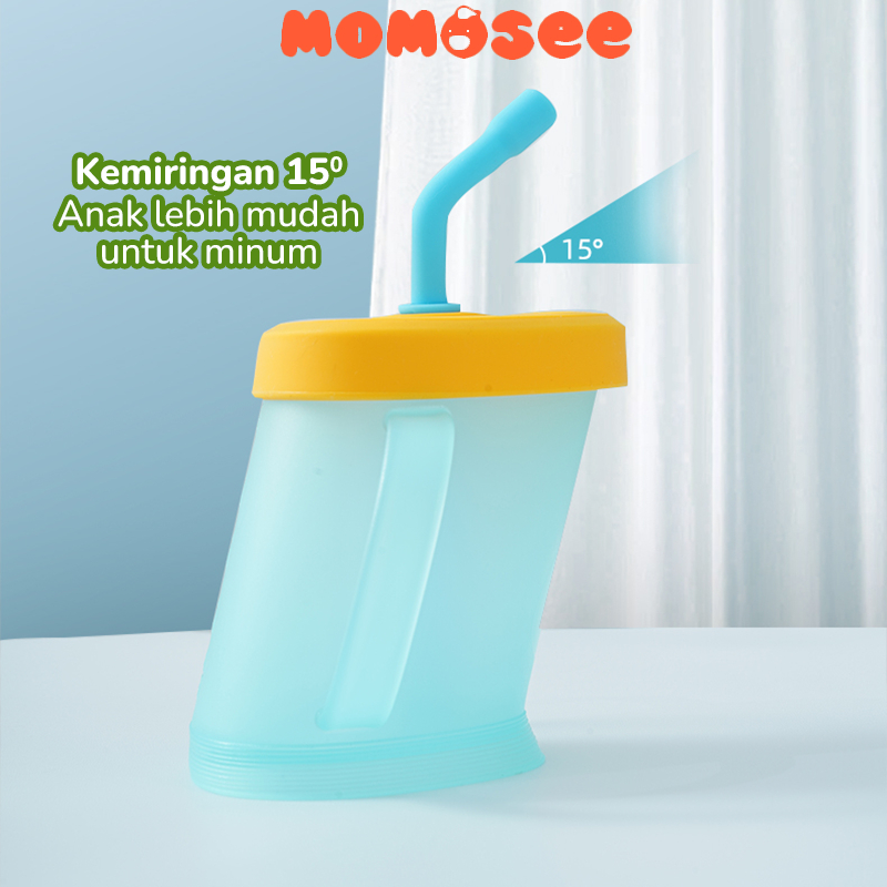 Momosee Gelas Minum Sedotan Anak Curve Straw Cup Gelas Susu Anak Anti Tumpah dan Pecah BB28