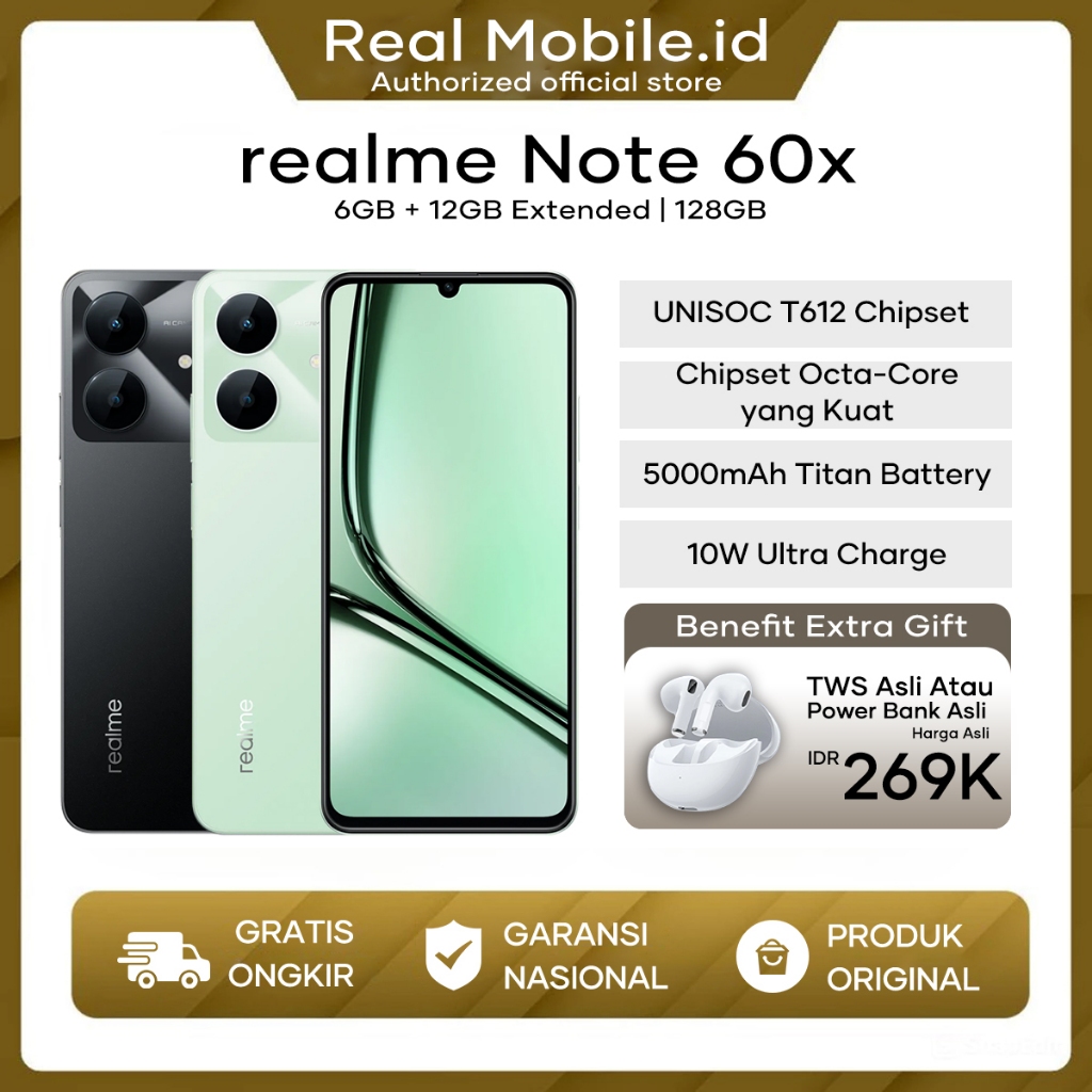 Realme Note 60x/Note 70 4/64GB 4/128GB UNISOC T612 Chipset 5000mAh Garansi Resmi Realme Indonesia