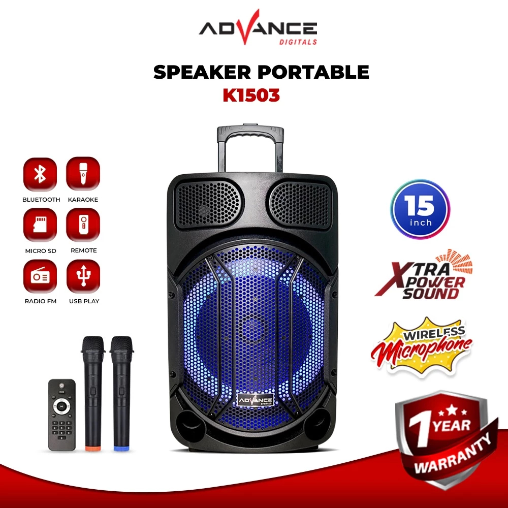 Advance K1503 Speaker Bluetooth Karaoke Wireless Portable Super Bass Aktif BONUS 2 Pcs Mic Wireless