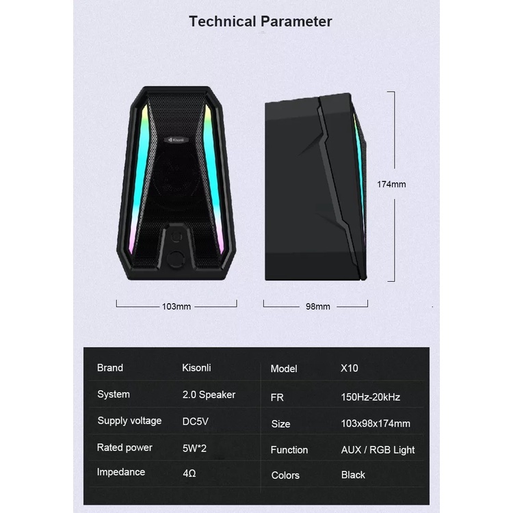 Speaker KISONLI X10 Laptop / PC / Gaming Soundbar Super Bass RGB Lighting - Garansi 1 Tahun