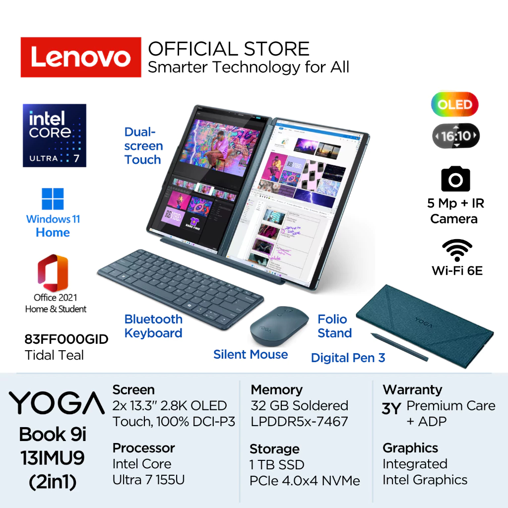 Lenovo 2in1 Yoga Book 9i Intel Core Ultra 7 155U Evo Win11 32GB 1TB SSD 13.3" 2.8K Touch OLED 100 PERSEN DCI-P3