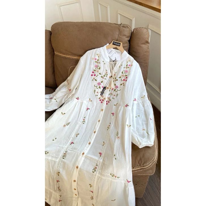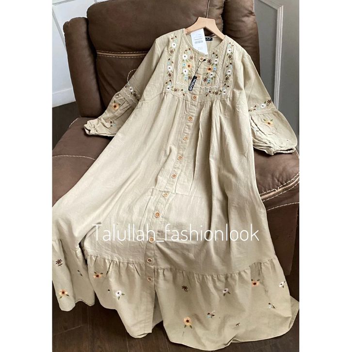 Dress Katun Linen Raya Bordir Talullah Gamis Wanita Terbaru Dress Wanita Premium Gamis Wanita Kekinian