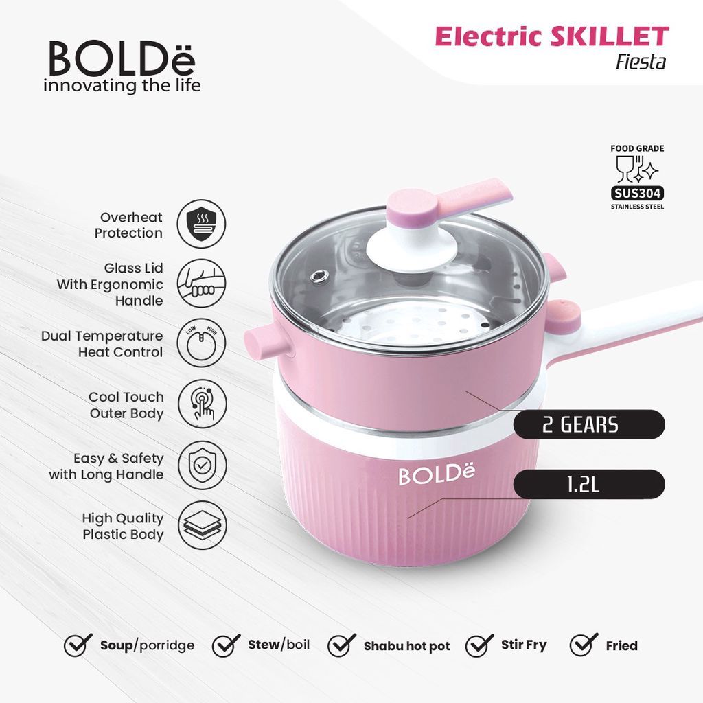 BOLDE PANCI LISTRIK PLUS KUKUSAN ELECTRIC SKILLET FIESTA KAPASITAS 1,2 LITER