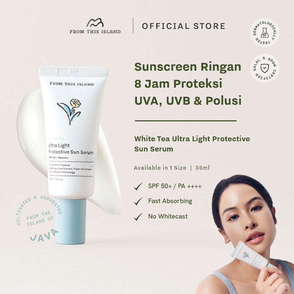 From This Island Official Store White Tea Ultra Light Protective Sun Serum SPF50+ dan PA++++ | Sunscreen Melembabkan