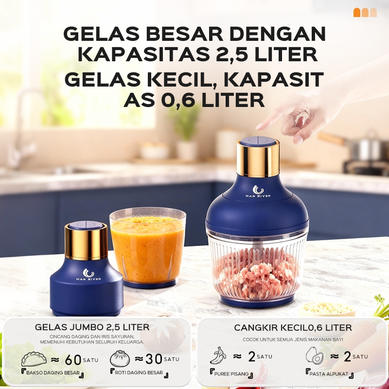 [Star]HAN RIVER Blender 2.5L+0.6L Dual Cup 3-IN-1 Multifungsi Chopper Daging dan Bumbu Mudah Dibersihkan