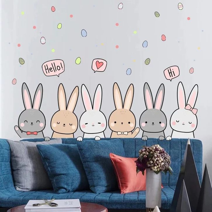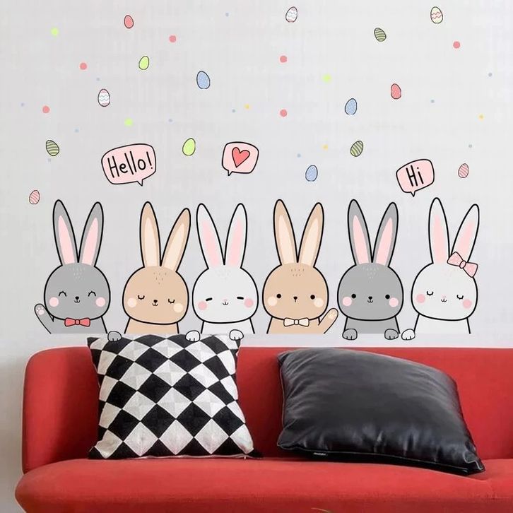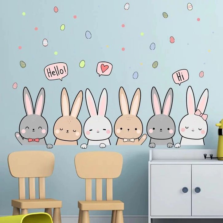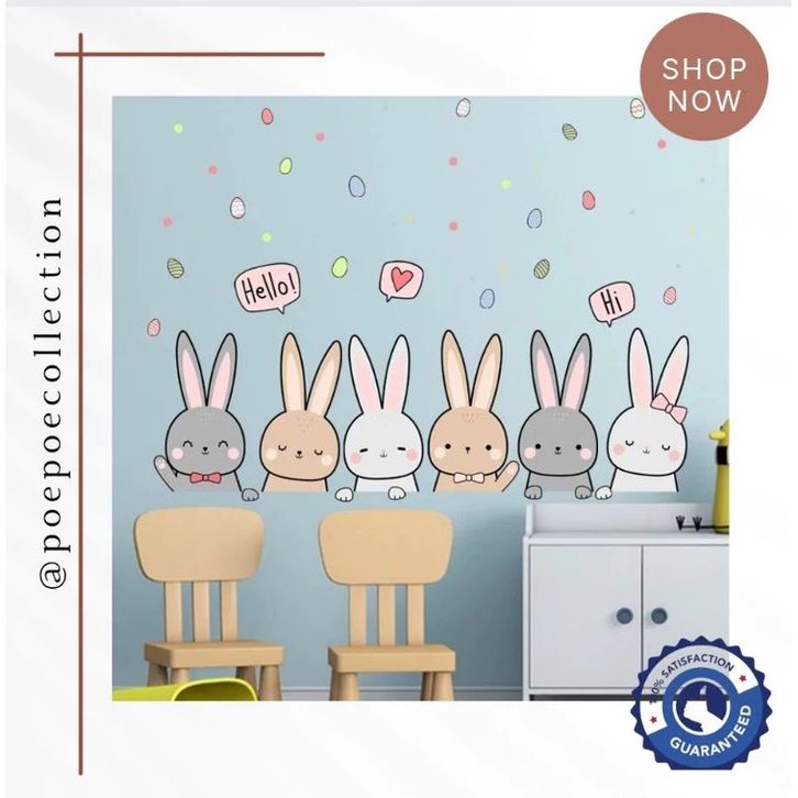 Stiker Dinding Kamar Tidur Anak Premium Kelinci Lucu Rabbit Bunny Pastel Poster Wall Sticker Dekorasi Kamar Baby Nursery