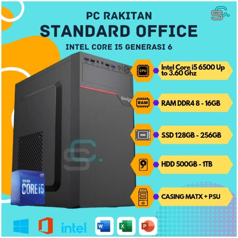 PC RAKITAN INTEL CORE I5 GENERASI 6 DDR4 KOMPUTER KANTOR DESKTOP STANDART OFFICE