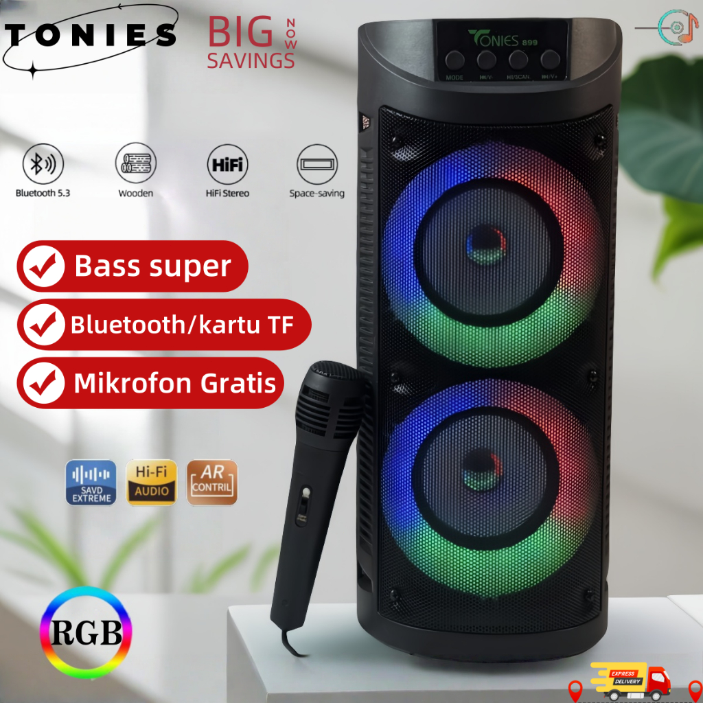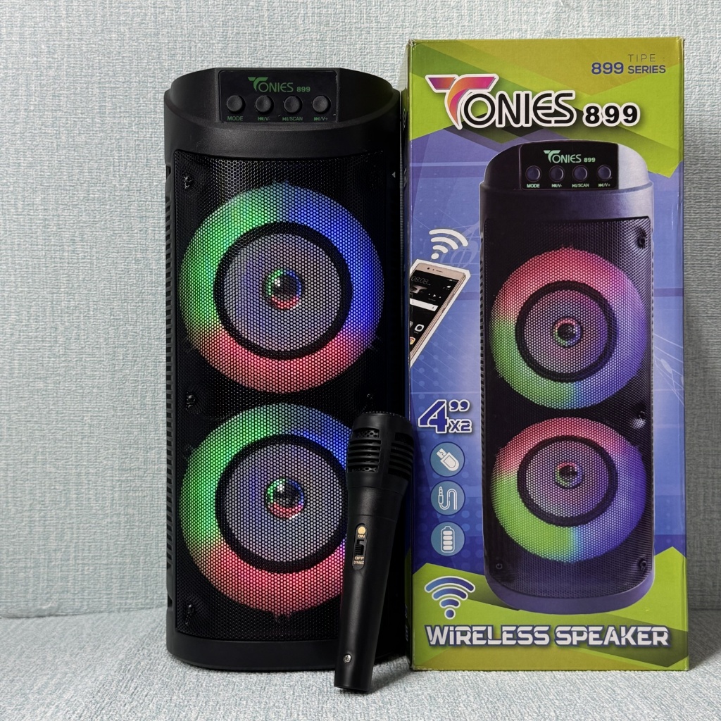 Bluetooth Speaker 8 Inch LED Bonus Mic Portable Tonies-899 Full Bass Free Microphone Karaoke