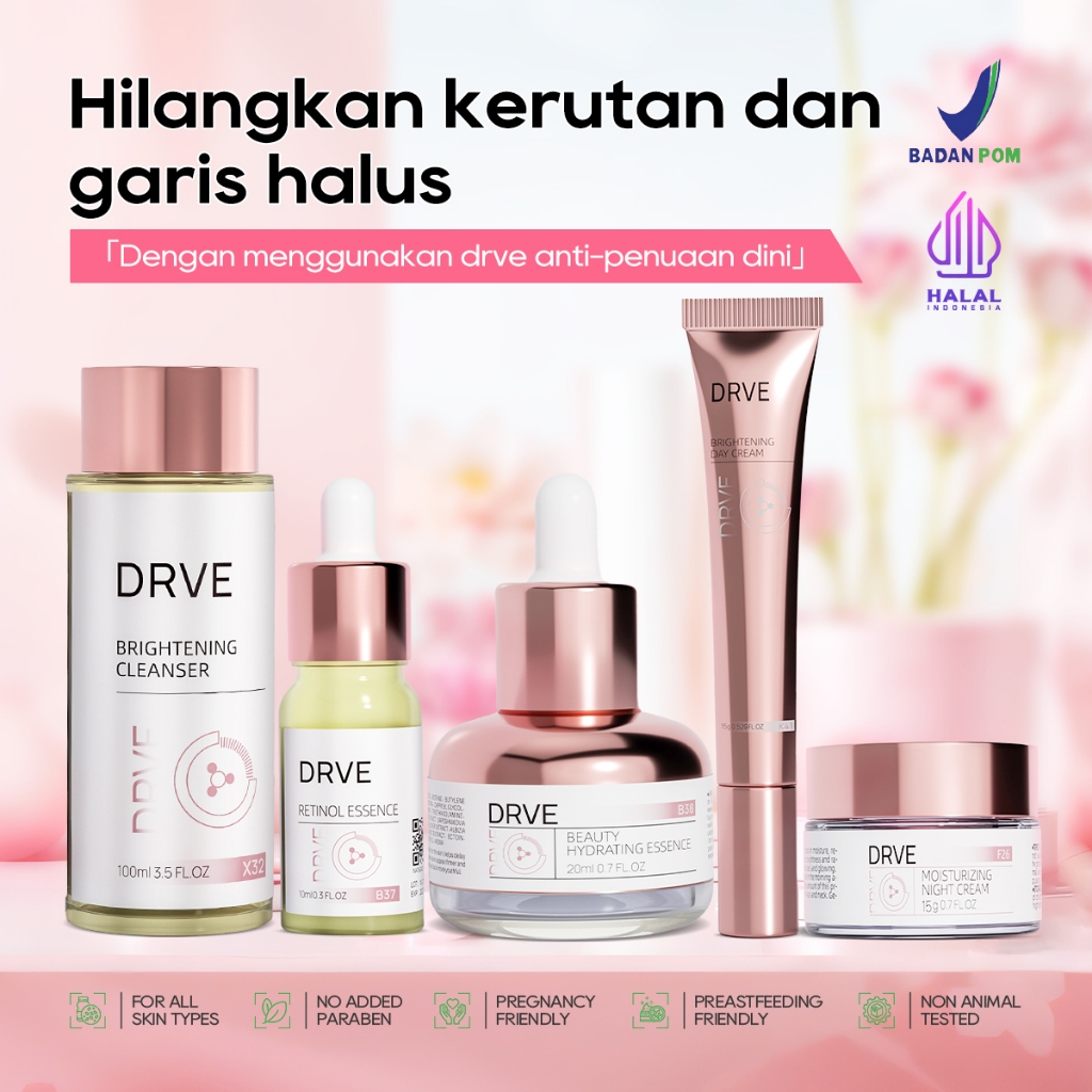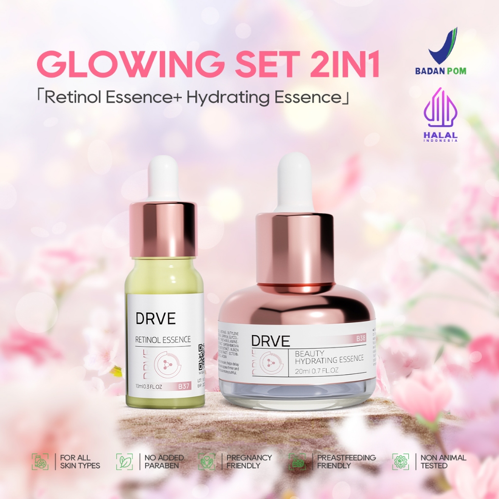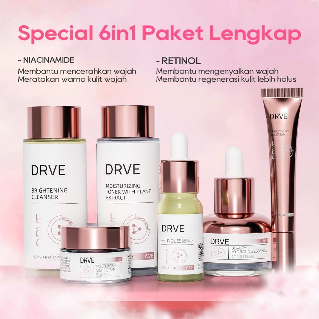 Drve Special Bundle Paket glowing brightening Cleanser + Moisturizing Toner + Retinol Essence + Hydrating Essence + Brig