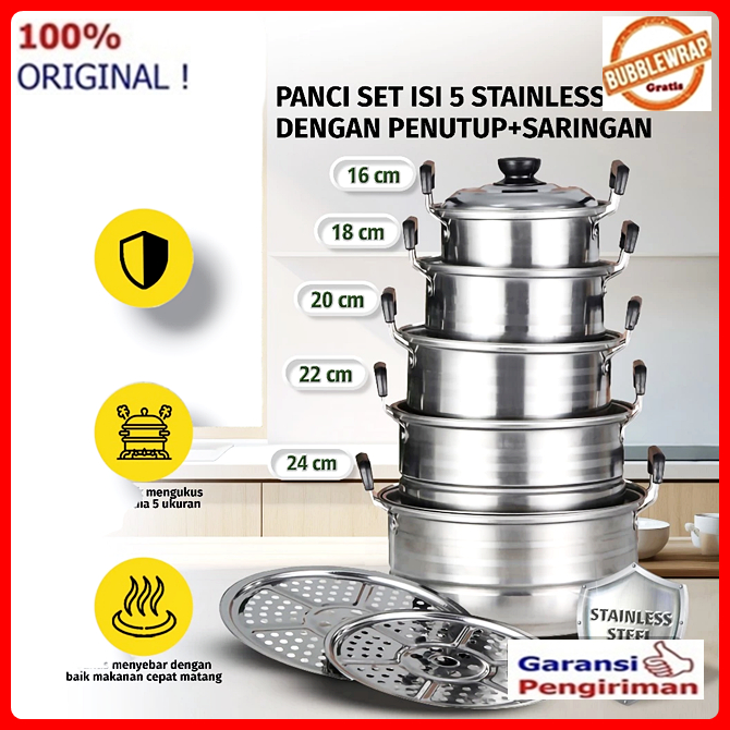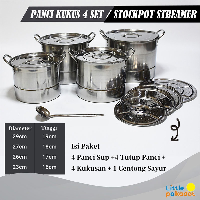 Littlepolkadot BMW Original Pot Steamer 4 Set/ Panci Kukus 4 Set/Panci Dandang Stainless Steel/Stock Pot Steamer Stainle