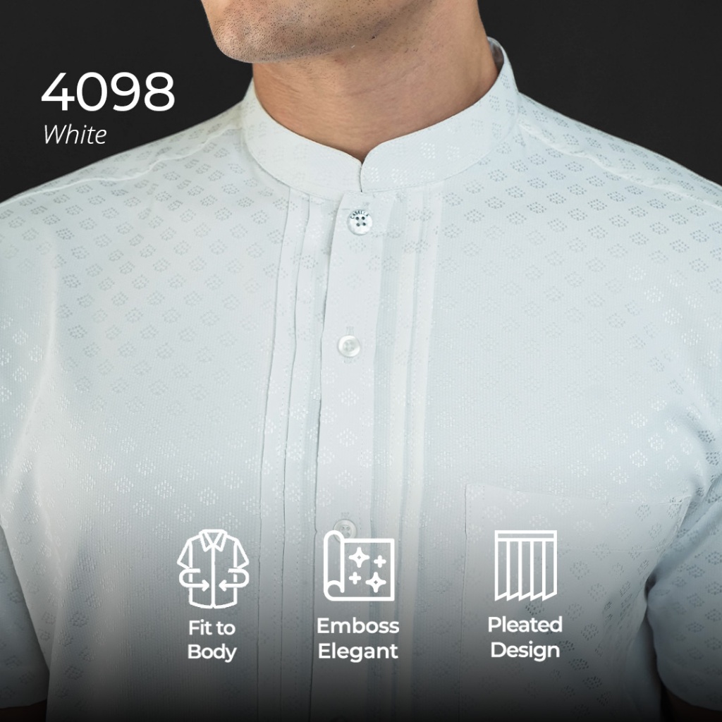 Casella Baju Koko Pria Lengan Pendek Pleats Ilyas | Baju Koko Putih Lengan Pendek