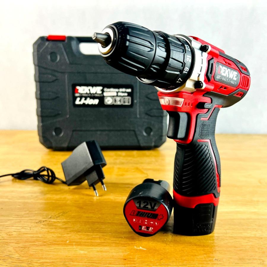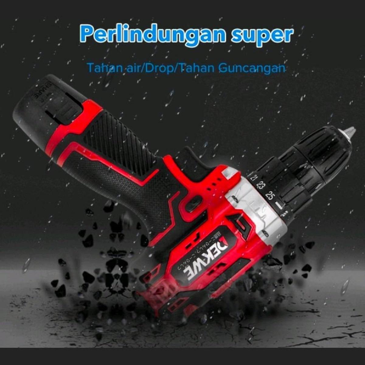 DEKWE DK1012 Mesin Bor Baterai Cordless 10mm 12V Torsi 25NM Reversible LED Koper Solid Dual Speed Mode Fast Charging