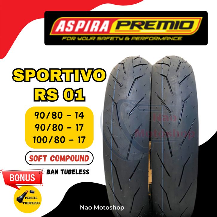 Ban Aspira Premio Sportivo RS 01 Soft Compound Tubeless Ring 14 90/80 100/80 Ring 17