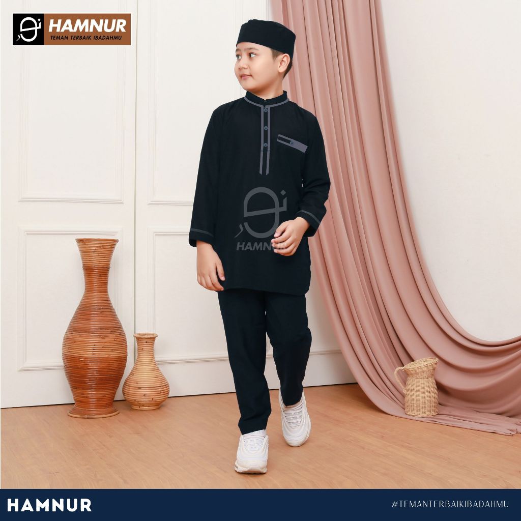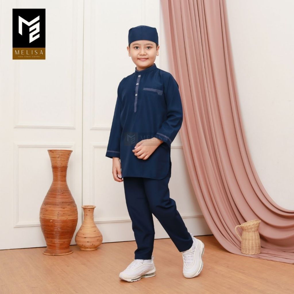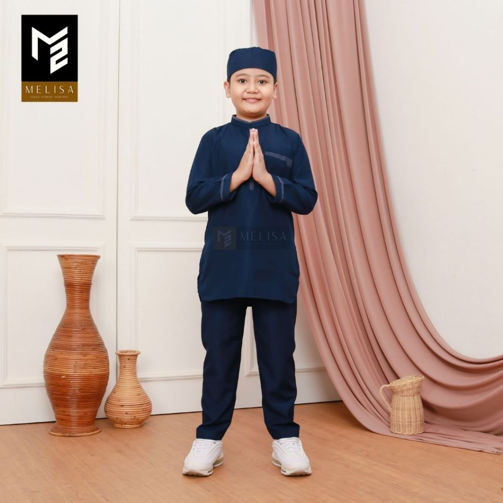 Baju Koko Setelan Pakistan Anak Bahan Poli Katun Sepasang Baju Celana Dan Peci Size S M L Buat Anak 1 -14 Tahun Warna Biru Navy Polos