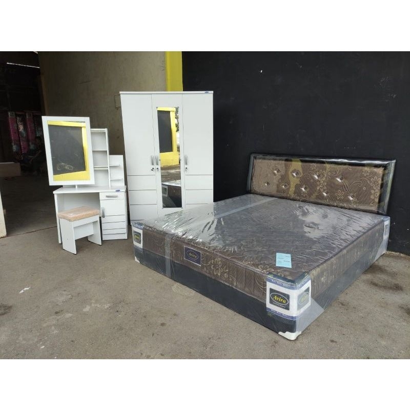 Set Kamar tidur furniture/ Paket Lamaran/ Paket seserahan nikahan Divan Springbed Multibed boxy Lemari 3 Pintu / Meja Ri