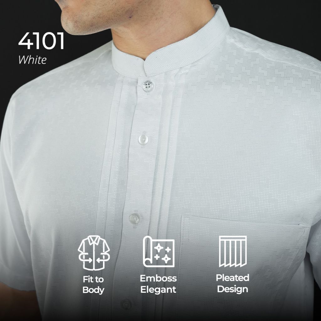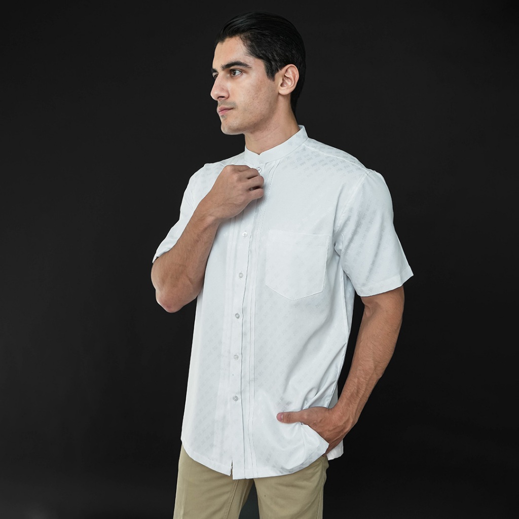 Casella Baju Koko Pria Lengan Pendek Pleats Ilyas | Baju Koko Putih Lengan Pendek