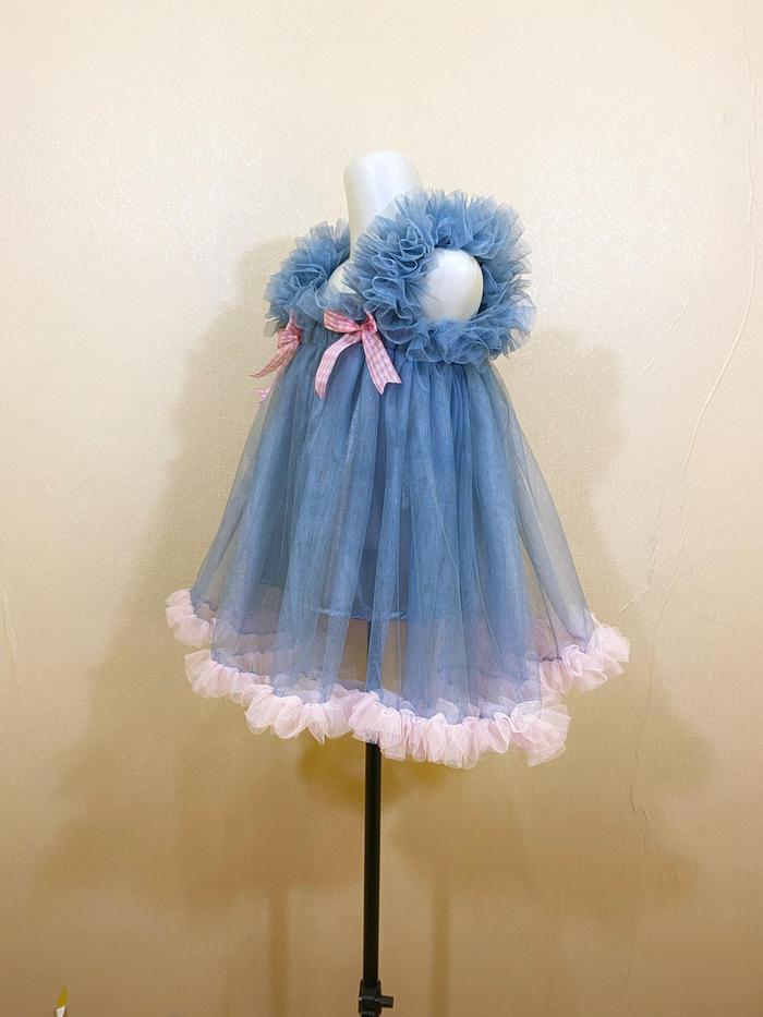 Dress Anak Denim Pita Gaun Anak Bunga Cantik Manis Tutu Fashion - Premium, Xs